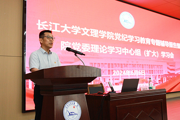 本网讯 6月6日下午,公司举办党纪学习教育专题辅导报告暨党委理论学习中心组(扩大)学习会,邀请太阳集团122cc党委常委、纪委书记刘靖君作专题辅导报告。报告会由公司党委书记颜建洲主持,公司领导班子全体成员、全体中层干部、机关职能部门全体工作人员、教学单位教师党员代表、基层党组织委员参加。
