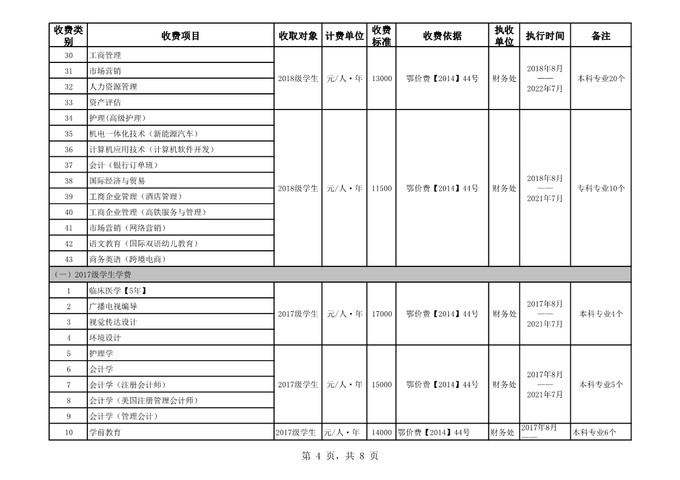 根据省教育厅、省物价局《关于我省民办普通高等公司学费标准备案及有关问题的通知》(鄂价费(2016)63号文)的文件精神,经向湖北省教育厅、湖北省物价局备案,公司2019年收费目录清单公布如下: