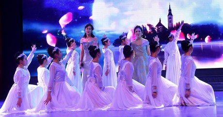 紧接着,各类节目依次登场。由我系师生陈湘、张茂惠子等带来的歌伴舞《明天,你好》,伴随着唯美的舞姿和柔雅亲和的歌声,大家不自觉将闪光灯挥舞起来,与台上的表演者互动。一曲歌毕,大家一起喊到:“管理系最棒!管理系最棒!”回声响彻大厅,一度将晚会的气氛推向高潮。此次的节目历经一个多月的筹备,系部员工会干部与各位老师以及表演者为此付出诸多努力和汗水。在临上台时,涂晓洁老师还为大家加油鼓劲:“不要慌,正常发挥就可以,我相信大家都是最棒的。”表演师生在训练时留下的汗水,付出的心血也都在舞台得到了回报。而我系节目的成功是师生团结合作,共同努力的结果,相信这些经验将成为我系未来的一笔宝贵财富,指引我们开创美好明天。