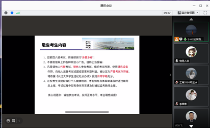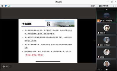 会议首先强调本次四六级考试的时间安排,提醒考生一定要凭证入场,不要迟到,在上午9:00后、下午15:00后迟到考生禁止入场。其次强调考前的相关准备工作,带好三证(身份证、准考证、员工证)、健康声明书以及所需的文具;同时考生进入考场需佩戴口罩,接收体温检测。最后,在考试纪律方面,会议强调,本次考试无故旷考者无法报考下次(12月份)考试。