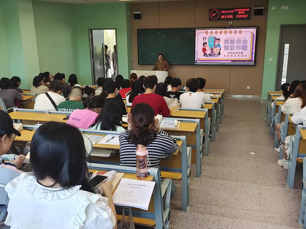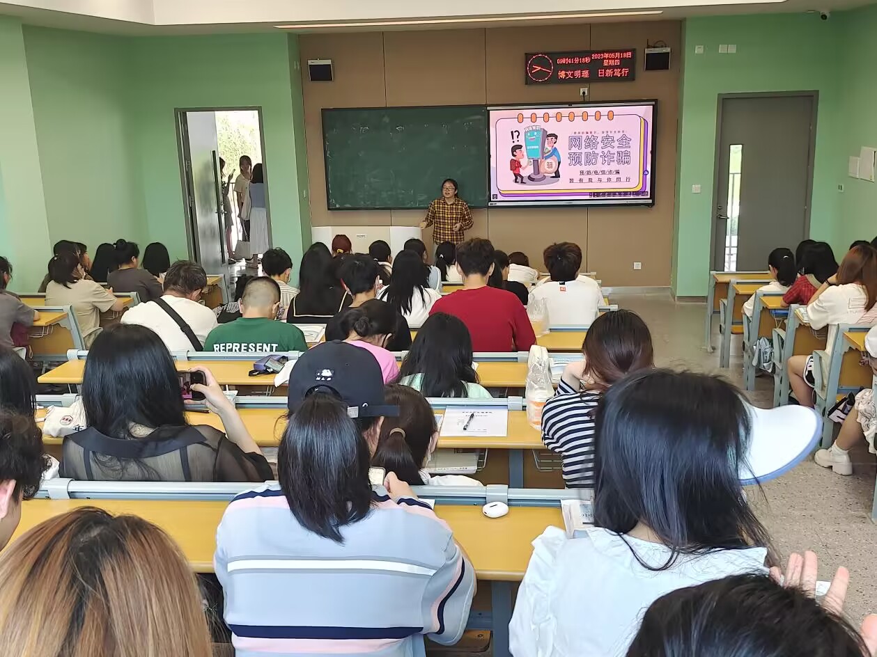 班会上,辅导员老师们围绕在校老员工的人身安全、财物安全、消防安全和防诈骗、防传销、防“套路贷”等方面开展。结合老员工群体特点,重点介绍了刷单返利、“杀猪盘”、冒充电商物流客服、熟人、领导、“公检法”,虚假投资理财、虚假购物、非法校园贷和网络游戏虚假交易等典型电信网络诈骗方式。告诫同学们要牢固树立安全意识,加强安全知识学习,不断提高自我保护意识和安全防范技能,共同构建平安和谐校园,并用生动的事例、简明的道理和朴实的语言为同学们上了精彩的“安全一课”。