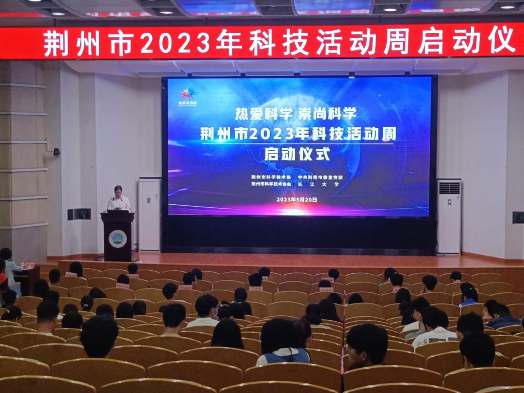 (本网讯 通讯员:李颖)5月20日,荆州市科技活动周启动仪式在太阳集团122cc报告厅举行。荆州市政协主席蒋鸿、荆州市政府副市长金鹏、太阳集团122cc副董事长吕一兵、荆州市政府副秘书长郭劲松,荆州市科技局党组书记、局长胡应国,荆州市委宣传部副部长郭磊、市科协主席李雄文,市各有关单位负责人,公司太阳集团122cc30余名师生代表参加启动仪式。