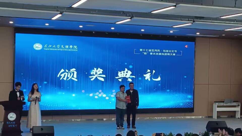 在第一环节“个人风采展示”中,10名参赛选手依次上台,他们面带微笑以沉着冷静、满怀自信的姿态进行自我介绍,并通过短视频的方式展现成长经历。晋级选手随即进行第二环节“职场情景模拟”挑战赛,对工作中出现的各种突发情况进行妥善处理。抽奖互动环节中,全体师生热情参加,将氛围推向高潮。第三环节“综合能力测评”作为难度最大的环节,由三位选手根据导师抽取的题目进行即兴演讲。选手通过缜密的逻辑,精妙的见解,充分体现了语言的艺术、表达的魅力以及个人的实力。在三个环节中,选手们各放光彩,彰显各自的优势,充分展示了自己的能力。经过现场比拼和评委打分,成绩出炉:张惠宇获一等奖,王倩、聂烯获二等奖,陈婷钰、廖宇哲、沈晨欣获三等奖,徐小倩、赵新炎、朱政、李洁获优秀奖。院领导登台为获奖代表颁奖。本次比赛在舞蹈表演《万疆》中圆满结束!