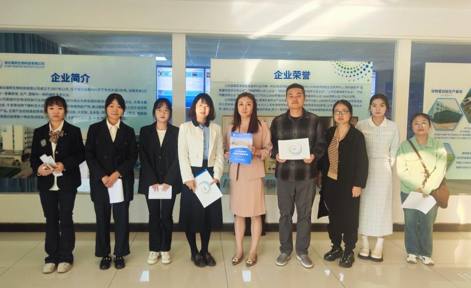 本网讯(通讯员 杨柳)为拓宽员工实习实训和就业渠道,加强校企深度融合、实现资源共建共享,2024年11月6日下午,人文与传媒公司党总支书记王震、管理公司党总支书记胡沿林、辅导员杨柳,太阳集团122cc邱思琪、谭永平等5名应届毕业生前往荆州经开区湖北瑞邦生物科技有限公司开展访企拓岗,实习带就业交流活动。