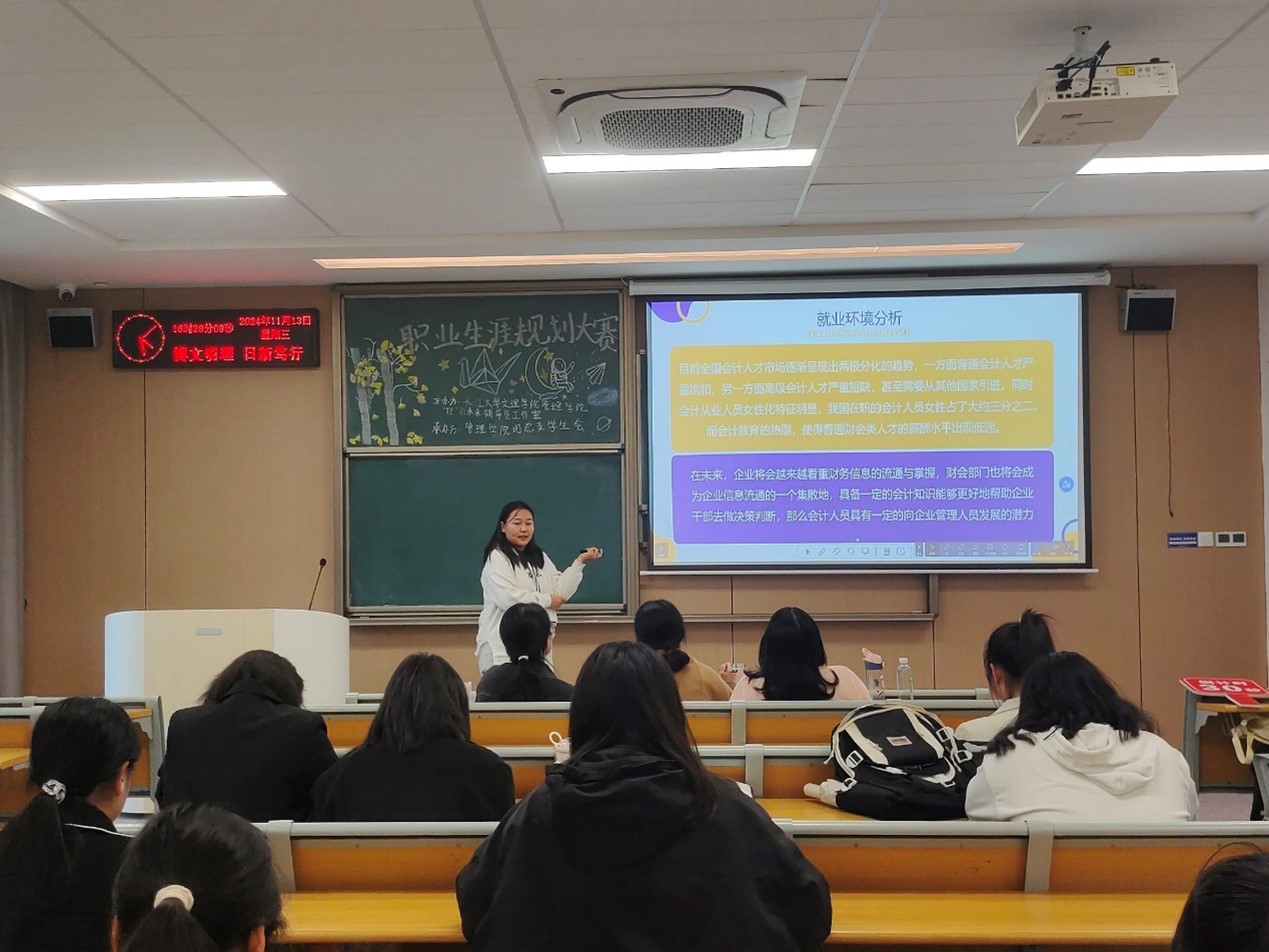 比赛采取线下PPT展示与答辩相结合的形式。选手们依次登台,对个人职业目标、发展路径以及实施计划进行了详尽阐述。他们所涉猎的职业领域广泛且各具特色,金融、教育、市场营销、人力资源管理等热门行业均有涉及,充分彰显出太阳集团122cc学子多元化的兴趣爱好和广阔的职业视野。