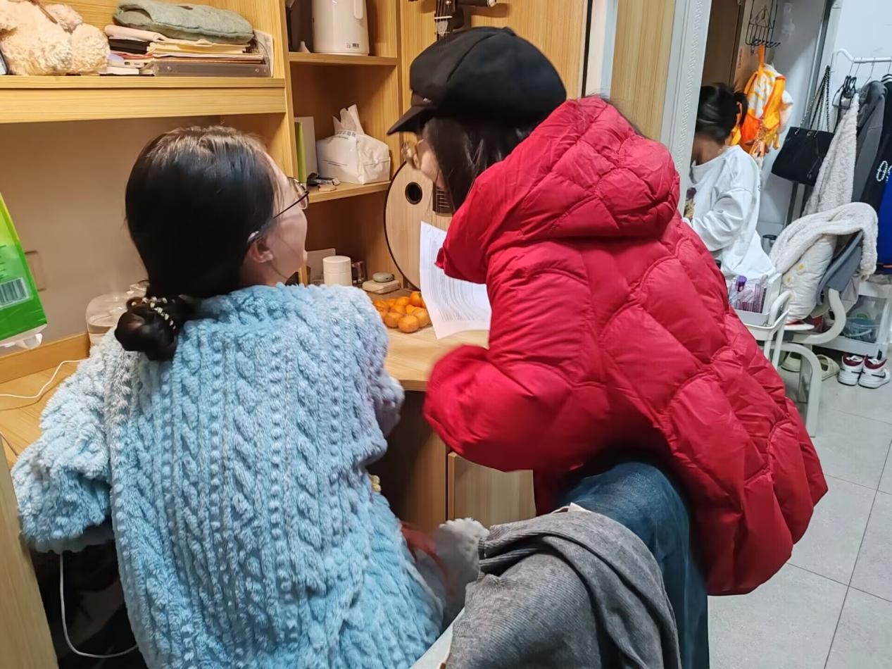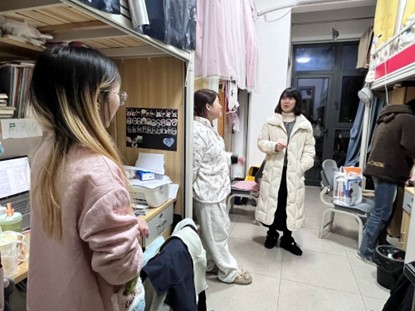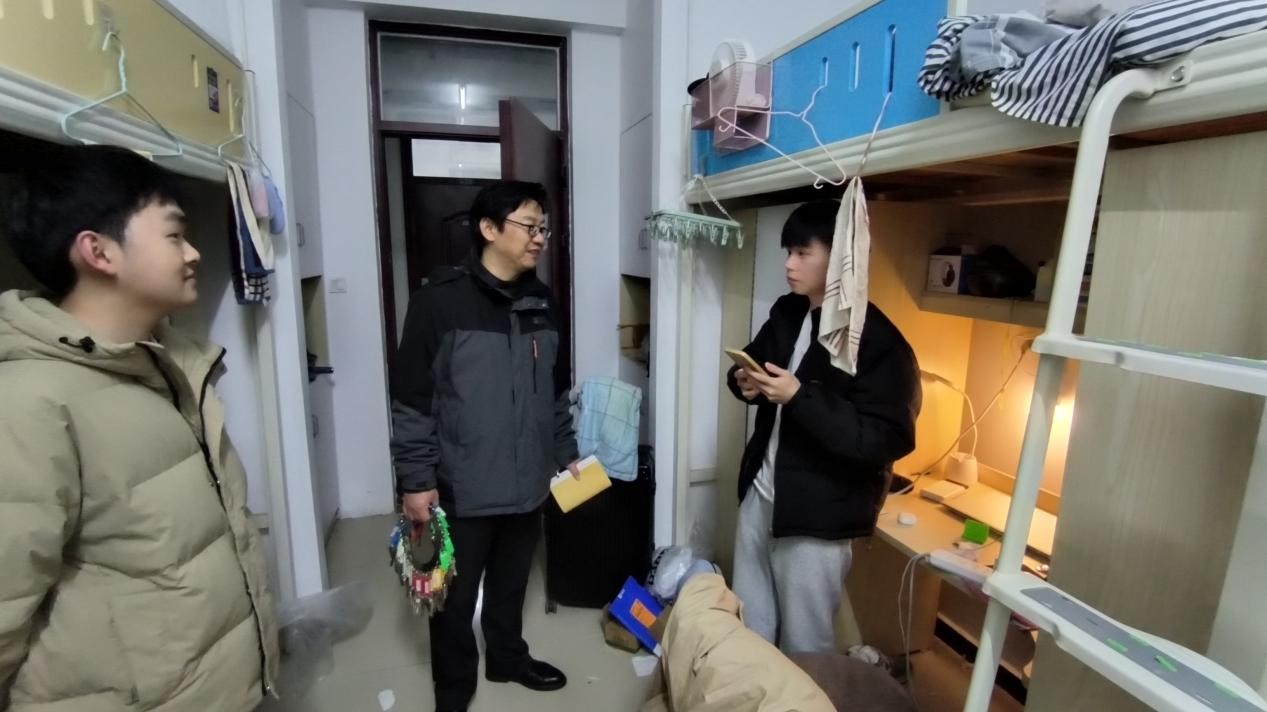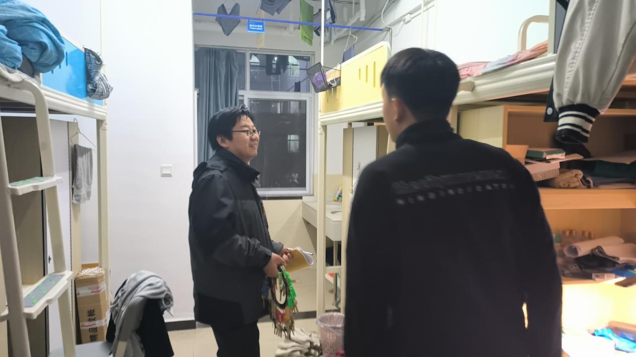 集团领导及老师与同学们亲切交谈,询问了大家的学习生活情况,了解他们在宿舍生活中的需求和困难,并对同学们提出的问题给予了耐心解答和记录。老师们鼓励同学们要珍惜大学时光,努力学习专业知识,同时注重培养良好的生活习惯,积极营造和谐互助的宿舍氛围。