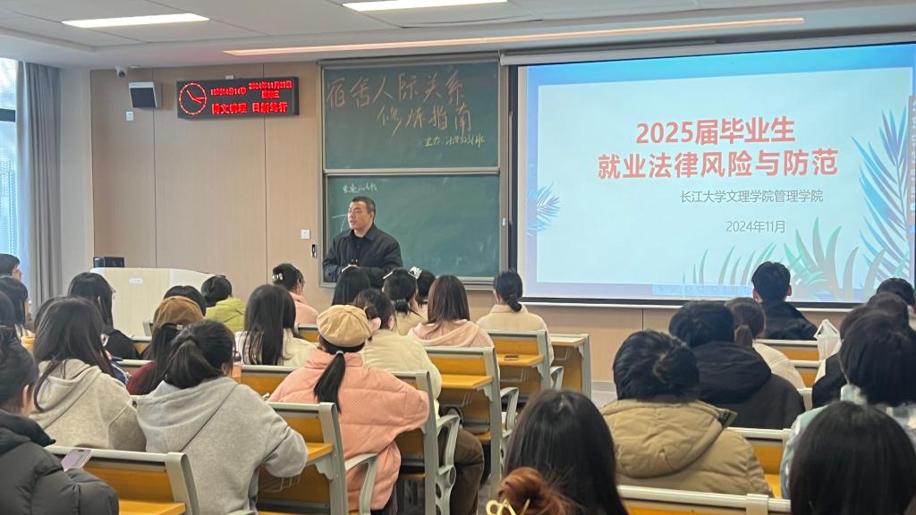 会议伊始,姚毅老师聚焦就业法律风险与防范,以专业的视角和丰富的案例,深入浅出地为同学们剖析了在求职过程中可能面临的法律陷阱,详细讲解了如何识别与规避风险,为同学们的合法权益保驾护航。