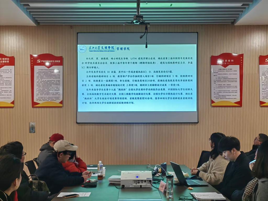活动伊始,杨琪隆重介绍了本次讲座的主讲嘉宾——田从祥教授。田教授是湖北省归国青年科技委会员、建筑与园林教研室主任。发表SCI等论文30余篇,主持多项省部级项目,指导员工竞赛获奖90余项,含国家级、省级训练计划多项。