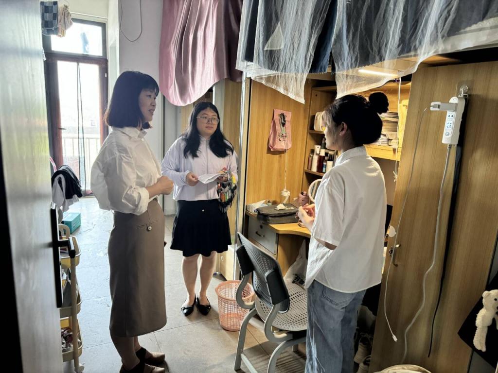 本网讯(通讯员 李平)为进一步做好2025届毕业生离校服务工作,传递母校关怀,营造文明温馨的离校氛围,6月17日上午,公司经理姚毅、党总支书记胡沿林、党总支副书记杨琪带领公司辅导员深入员工宿舍,走访慰问毕业生,为即将踏上新征程的学子们送上真挚祝福与殷切嘱托。