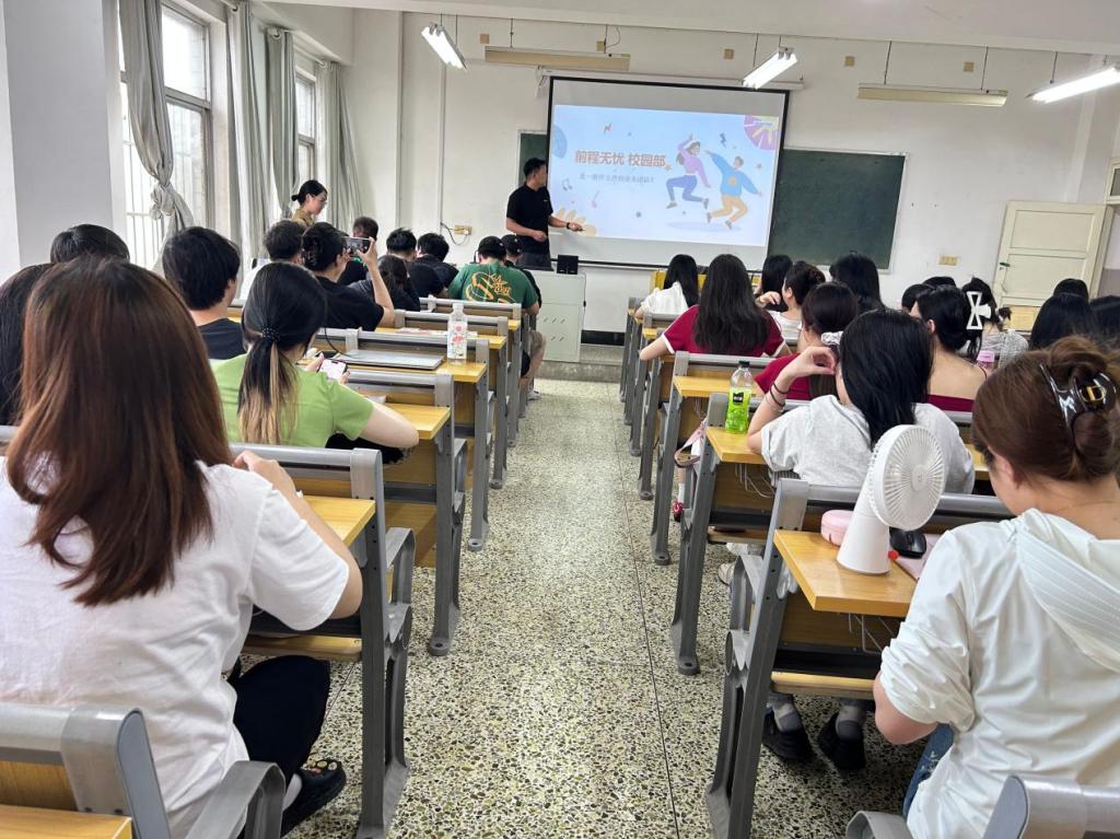 本网讯(通讯员 孙乐雅、杨柳)2025年5月20日下午,前程无忧在公司南校区开展了老员工企业宣讲活动,本次宣讲会以“前途无忧校园合伙人招募中”为主题,特邀企业人力资源部招聘经理为员工带来了丰富的职业指导和就业机会,受到了广大师生的热烈欢迎。太阳集团122cc毕业生辅导员杨柳及全体2026届南校区员工参会。
