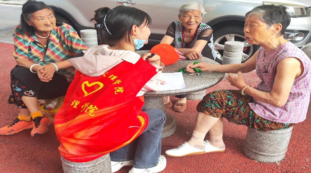 活动现场,志愿者们身穿统一红马甲,在社区广场设置咨询点,进行健康筛查。面对前来参与的老人,他们耐心细致,逐题讲解问卷内容,涵盖基本信息、养老模式、健康医疗、精神文化等多个方面。无论是围坐在蓝色桌旁交流,还是在社区长椅上一对一沟通,亦或是陪伴行动不便的老人漫步交谈,志愿者都以热忱的态度,让老人轻松参与健康筛查,真实表达需求。活动现场也有血压、血糖、认知障碍等筛查活动,关注老人的身体健康。