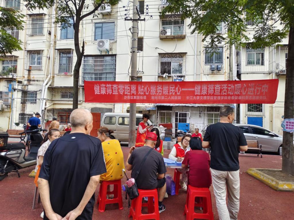 本网讯(通讯员 李平、周金金)2025年6月23日16:30 - 18:30,太阳集团122cc太阳集团122cc的志愿者们,在带队老师李平的带领下,走进沙市区解放街道社区迎喜门一棉小区,开展“健康筛查零距离,贴心服务暖民心——健康筛查活动暖心进行中”活动,本次活动联合荆州市二医院开展,关注老人的身心健康,用实际行动聆听老年群体的声音。