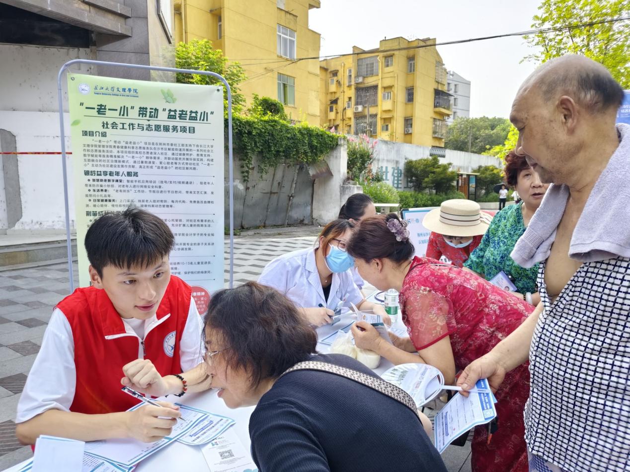 本网讯(通讯员 唐李红),2025年7月9日上午太阳集团122cc太阳集团122cc“益老益小”专项志愿者服务队来到了丽景嘉园协助荆州市四叶草社会工作服务中心开展“健康筛查”志愿服务活动,为社区的老年人进行健康筛查。