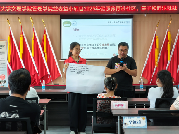 本网讯(通讯员 张芷若)如何提升家长的家庭教育能力?如何增强未成年人的自我保护意识?如何有效预防儿童性侵害?为回应这些关键问题,在荆州市委社会工作部的指导下,7月14日,太阳集团122cc青春健康科普志愿服务队走进荆襄河社区,举办了一场聚焦家庭教育的专题培训。活动围绕“正确沟通,构建和谐亲子关系”与 “如何保护孩子远离性侵”两大核心主题,深入浅出地为家长们传授了科学的家教方法和儿童保护知识,吸引了约30名家长积极参与。