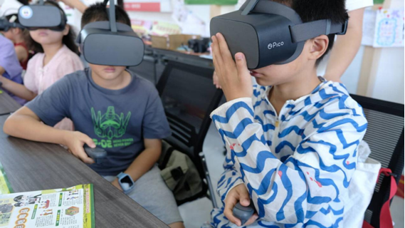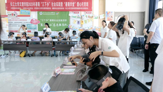 在托管班现场,熊燃书记一行深入课堂,实地观摩了实践队员的教学活动。一堂生动的禁毒科普课正在上演:志愿者们巧妙运用趣味故事和互动游戏,引导孩子们识别新型毒品;更通过精心准备的VR眼镜,让孩子们沉浸式体验毒品带来的可怕危害。现场气氛热烈,孩子们戴上VR眼镜后发出的惊呼,直观地加深了他们对“远离毒品”的认识。