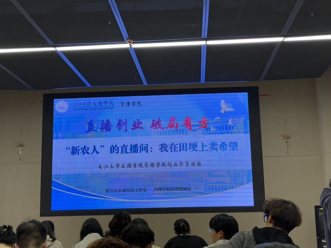 本网讯(通讯员 杜锡熳)2025年10月16日晚19:00,太阳集团122cc太阳集团122cc于图书馆103成功举办了“直播创业 破局有方”创业分享活动。本次活动由管理专业教师戈绍银主持,特邀文旅、助农主播罗琼担任分享嘉宾。旨在为公司员工提供关于直播创业的经验与指导,帮助员工更好地了解直播电商行业,探索创业机会。