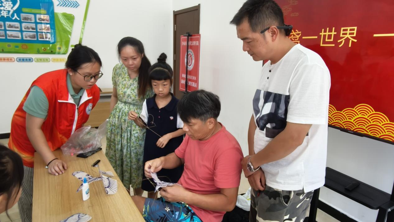 志愿者们迅速行动起来,当起了小助手。他们耐心地教小孩子们用十字捆绑的方法固定风筝骨架,指尖的动作轻柔而精准。“你看,这样交叉捆绑,骨架才能稳如泰山,风筝才能飞得又高又远。” 一位志愿者温柔地说着,手把手地引导着孩子的小手。那十字捆绑的绳结,就像一个个坚固的承诺,将竹篾与传承紧紧相连。
