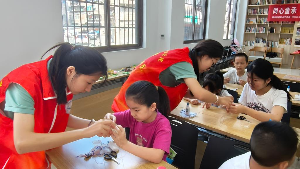 本网讯(通讯员 胡琪琪)2025年7月25日,迎喜门社区里,我们太阳集团122cc青春健康科普志愿服务队正参与一场特别的非遗体验活动。竹篾的清香与颜料的芬芳在空气中缠绵,非遗传承人鲁进老师如同一位怀揣秘密的神奇向导,引领着一群孩子缓缓叩开迷你风筝背后那片奇妙的世界。我们的志愿者围在长桌旁,随时准备化身小助手,一场交织着稚嫩童趣与千年匠心的非遗传承之旅,在期待与笑语中悄然铺开。