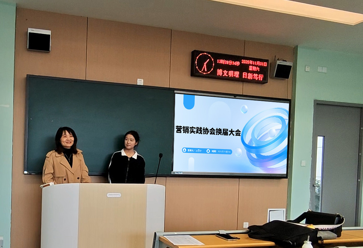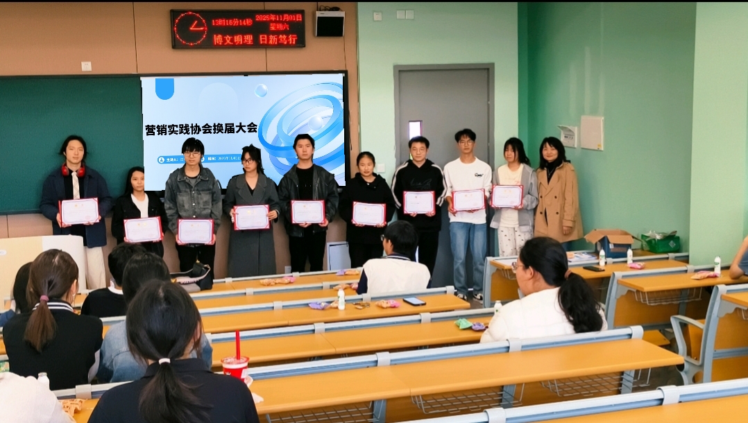 本网讯(通讯员 李政儒)11月1日,2025届太阳集团122cc营销实践协会换届大会在01-c-113s如期举行。协会指导老师刘春梅老师,及协会全体新老成员齐聚一堂,共同见证了协会承前启后、开辟新篇章的重要时刻。
