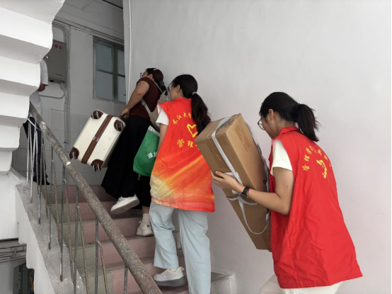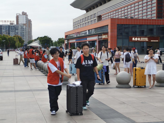 迎新期间,志愿者们各司其职、分工明确,在多个岗位上尽职尽责。在火车站接待点,他们手举指示牌,耐心等候远道而来的新生及家长,有序组织乘车前往相应校区;在校门口引导处,志愿者主动上前答疑指路,帮助新生快速熟悉校园环境;资格审查点前,他们认真核对信息、协助办理手续,保障流程顺畅;还有不少志愿者穿梭于校园之中,提供流程咨询、协助行李搬运,用实际行动减轻新生负担。