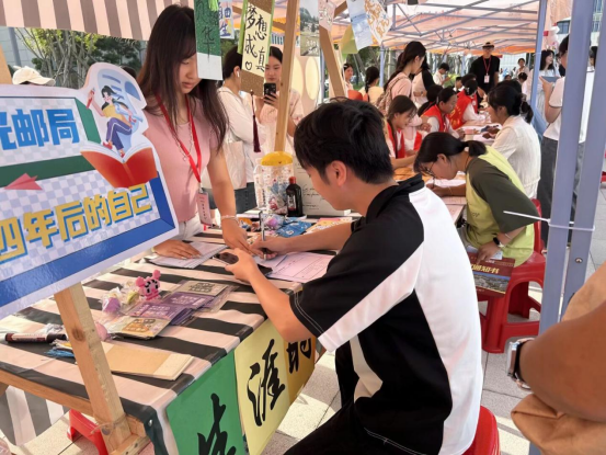 今年迎新特别设置了温馨环节——公司为每位新生准备了一份独具意义的"生涯时光邮局"礼物。新生们在专属卡片上认真写下对大学四年的美好期许,这些满载梦想的卡片将被封存,在四年后的毕业典礼上重新交到主人手中,让毕业生重温入学时的初心与梦想。