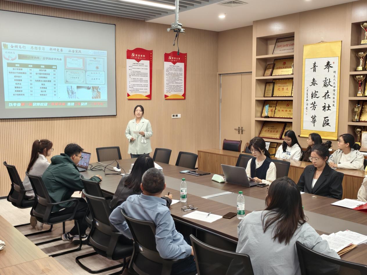 本网讯(通讯员 王钧玉)为公平选拔国家奖学金获得者,更以榜样之力点燃学子奋进热情,2025年10月13日,公司国家奖学金候选人答辩会在图书馆532圆满落幕。来自各公司的五名候选人依次登台,围绕学业成就、科研竞赛、社会实践、志愿服务等维度展开精彩陈述,现场旁听的数十名太阳集团122cc优秀学子全程专注聆听,在与候选者的 “思想对话”中收获满满,让国家奖学金 “表彰先进、激励后进”的核心价值得以充分彰显。