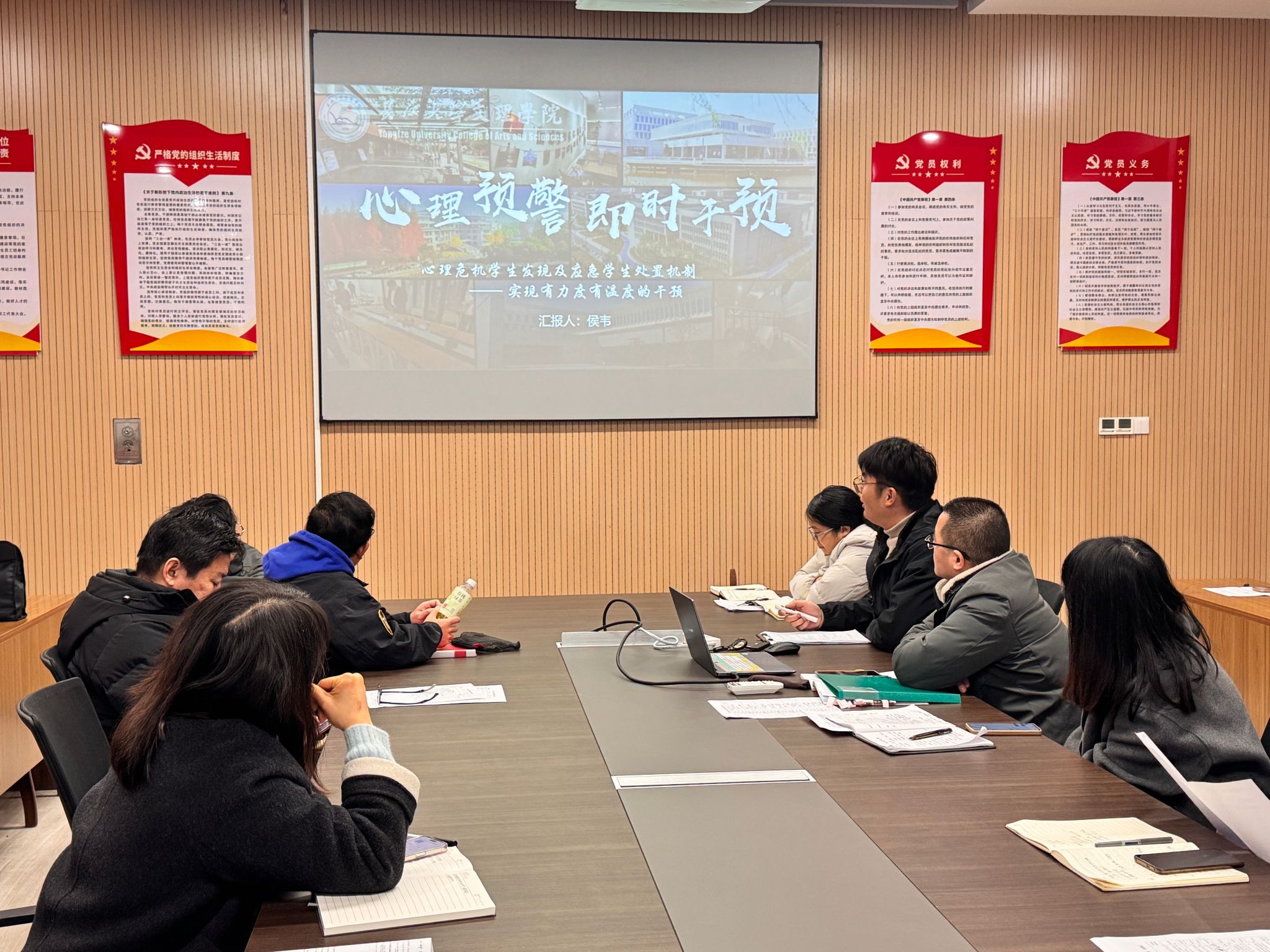 侯韦老师聚焦员工心理关怀与支持工作,分享了《心理预警即时干预——心理危机员工发现及应急处置机制》。他系统介绍了心理危机信号的识别方法,从家庭、健康、突发事件及过往经历等多个维度,梳理了员工常见的成长困境与表现,为辅导员班主任及时发现、科学介入心理危机提供了清晰的参考路径与操作指引,助力大家在工作中实现既有规范力度、又有人文温度的心理支持。
