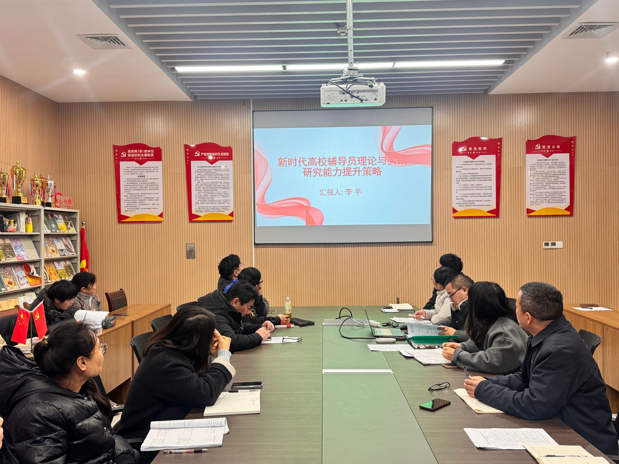 李平老师以《新时代高校辅导员理论与实践研究能力提升策略》为题,分析了当前员工思想政治教育工作面临的新形势与新挑战,并结合辅导员班主任队伍能力建设中的实际问题,阐述了辅导员班主任应具备的核心素养。她从系统思维和创新思维出发,提出了能力提升的具体建议,强调在工作中树立整体观和大局意识,围绕立德树人根本任务,从具体问题切入,扎实推进各项职责落地,切实增强思想政治教育的针对性与实效性。