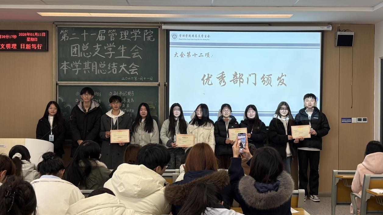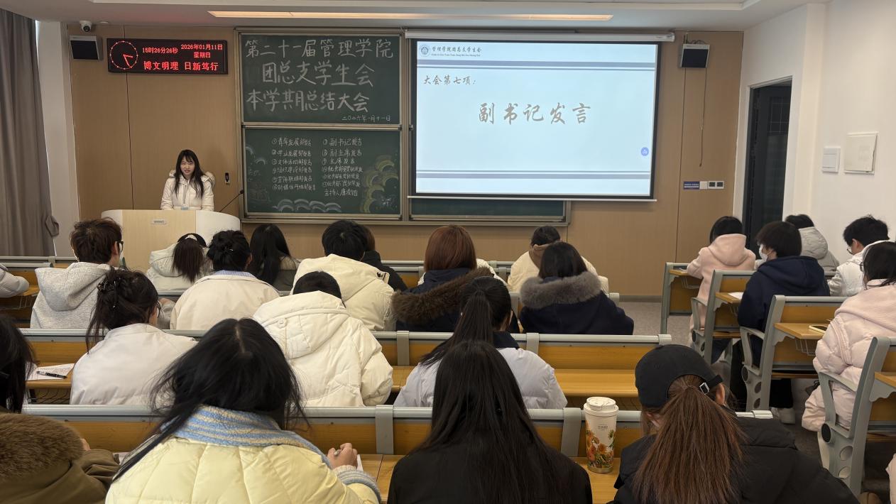 大会依照既定议程有序推进,青年发展部、学业发展部、文体活动部、组织建设部、宣传联络部、新媒体网络部依次上台作工作总结。各部门部长聚焦本学期内工作开展情况,客观梳理了部门在服务同学、组织活动、日常运营等方面的成果,同时直面工作中存在的短板与不足,深入剖析执行过程中暴露的问题与疏漏,还进一步锚定了新学期发展方向,结合部门职能与现存问题,制定切实可行的改进措施与工作规划。