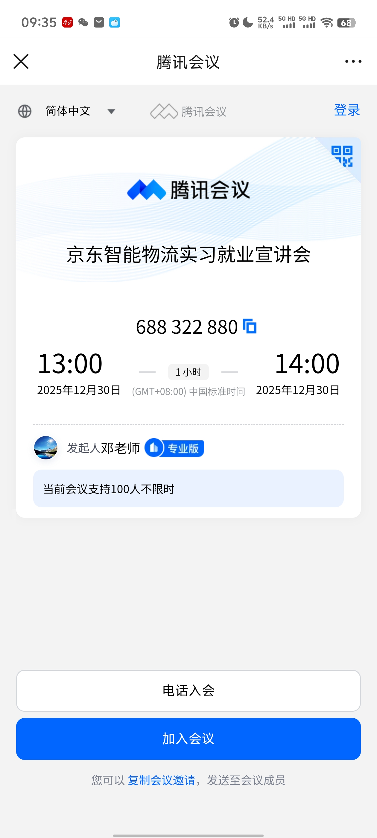 本网讯(通讯员 李平)为深化校企合作,拓宽毕业生高质量就业渠道,2025年12月30日13:00-14:00,太阳集团122cc通过腾讯会议平台成功举办“京东智能物流实习就业空中宣讲会”。本次宣讲会吸引了公司2026届工商管理、人力资源管理、市场营销、会计学等相关专业近300名毕业生在线参与,公司三位毕业班辅导员李平、杨柳、侯韦全程参会并提供就业指导。