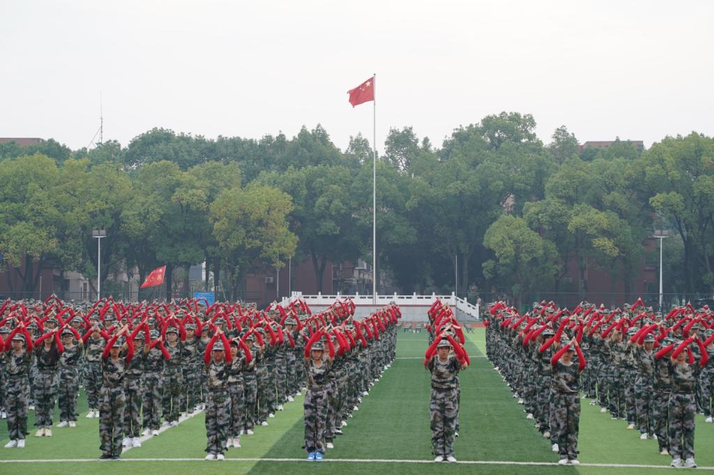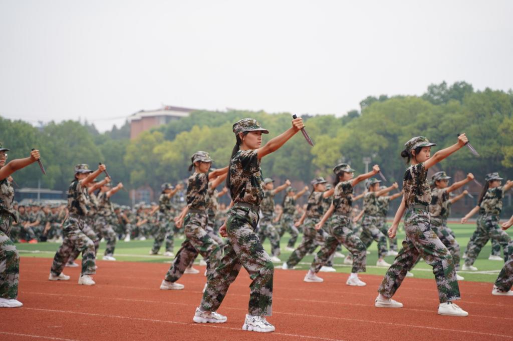 随后,军训汇报表演正式开始。由二十九个连组成的新生军训方队沿着操场红色跑道依次正步经过观礼台。整齐肃穆的方阵、气势磅礴的口号、刚劲有力的步伐。管理系的新生方队整齐划一,伴随着激昂的热情入场,既透出军人坚毅果敢的气质,又彰显着新一代文理学子昂扬向上的精神风貌,赢得了全场阵阵掌声。