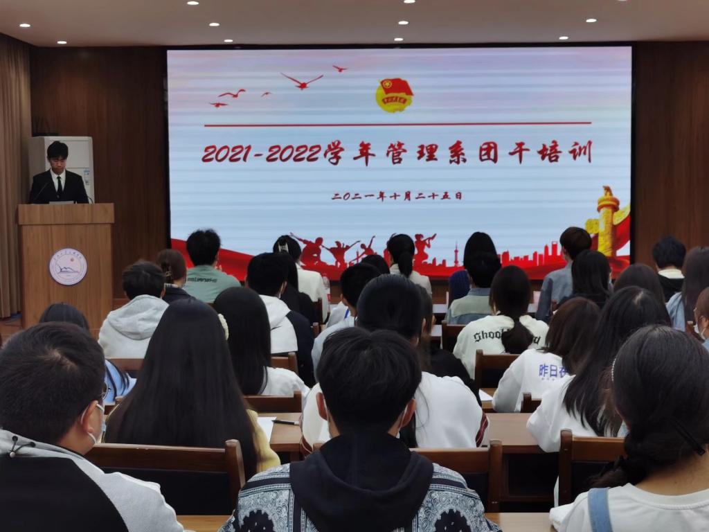 本网讯(通讯员 朱红燕)10月25日晚19:00,为了进一步提高团干部的政治理论思想和综合素质,我系于城中校区3教408教室召开2021~2022学年第一次团干培训大会。系党支部副书记胡沿林、系优秀班主任张菊、管理系团总支员工会全体成员及各班班委参加了此次培训。