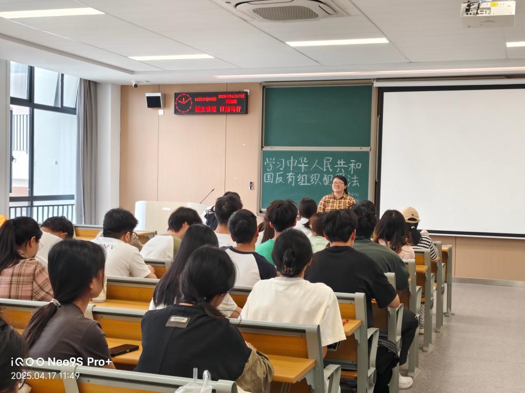 活动中,各班级结合课件展示了我国《反有组织犯罪法》的总则,相关的预防和治理、案例分析等。班会课上,各班辅导员为同学们介绍了关于《反有组织犯罪法》的内容,并依次为同学们介绍了依法从严惩治黑恶犯罪、深挖黑恶势力"保护伞"、严防黑恶势力渗入基层、防止未成年人遭受侵害等六个章节。