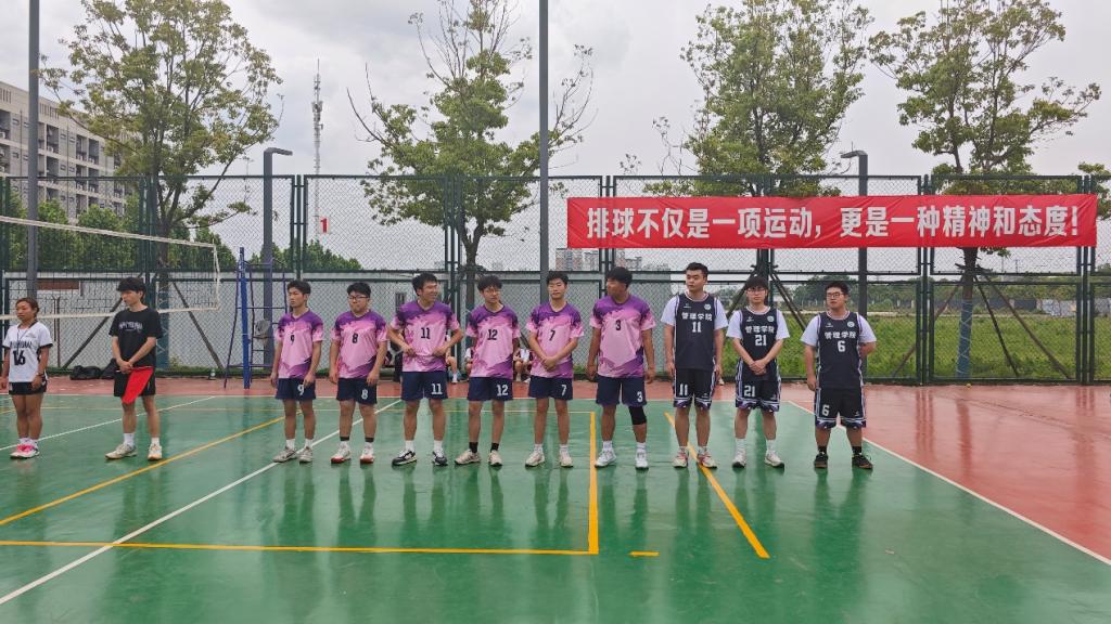 比赛开始前,参赛队员们早早来到场地热身,互相鼓励,积极商讨战术。场边观众也热情高涨,纷纷为支持的队伍加油助威“管理,加油!”“管理,加油!”。随着裁判一声哨响,比赛正式拉开帷幕,队员们迅速进入状态,发球、传球、扣杀……每一个动作都展现出扎实的基本功和默契的配合。每位队员都全力以赴,精彩表现赢得了现场观众的欢呼与掌声。