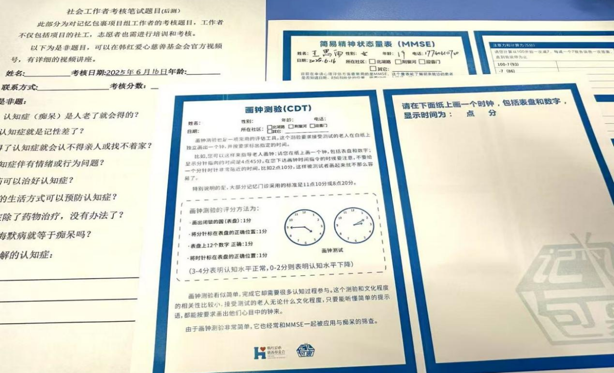 为强化实操,代倩老师再次发放问卷,讲解填写逻辑,同步传授简易精神状态量表(MMSE)、画钟检测(CTD)的使用方法。强调与老年人沟通要“应变有法、耐心十足”,不能生硬提问,要从关心日常状况切入,如“爷爷奶奶计算力怎么样呀?能否回答几个计算题?” ,依能力调整问题难度,确保有效采集信息。