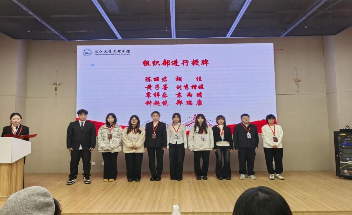 仪式上,各部门部长依次开展授牌仪式,亲手将工作牌戴到每位干事的胸前,明确部门职责,传递责任与期许,激励干事们以崭新姿态投身志愿服务。