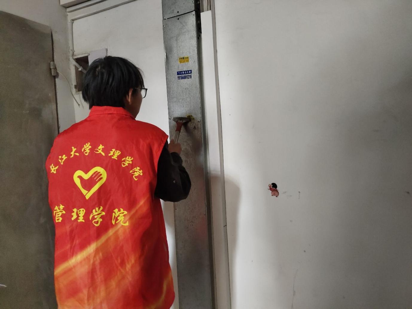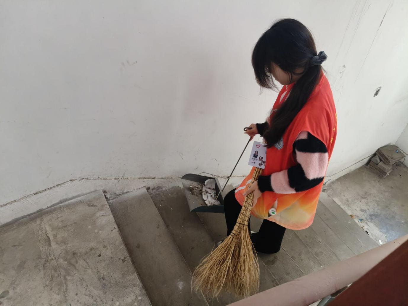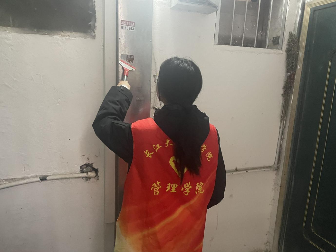 志愿者们按照预先规划,以两人或三人为一组,迅速投入到劳动中。面对墙面、电线杆、公共设施上顽固的小广告,大家分工协作、默契配合。小广告种类繁杂、粘贴牢固,部分还隐藏在角落缝隙中,清理难度不小,但志愿者们不放过任何一处“视觉污染”。在清扫卫生环节,大家拿着扫帚进行全面清理,每一个卫生死角都被仔细排查、彻底清扫。