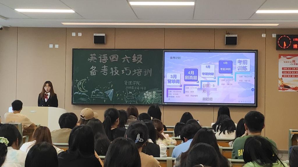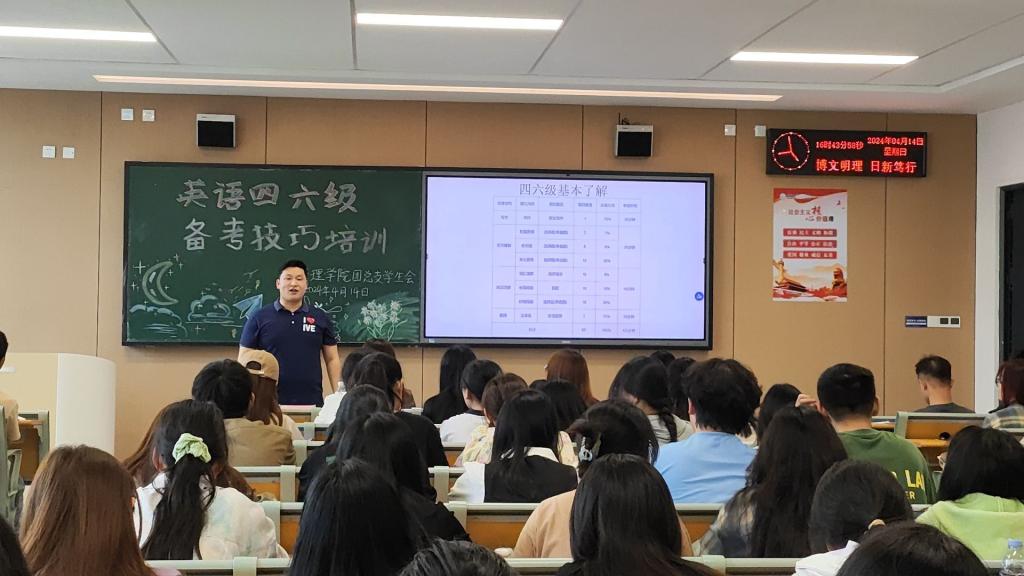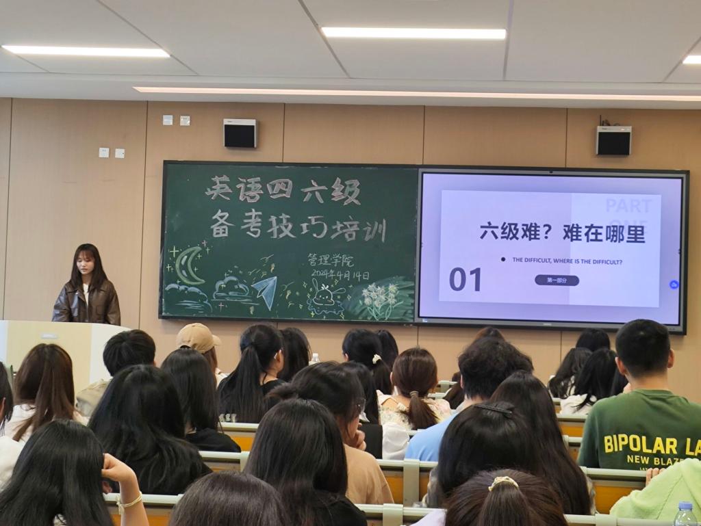 此次备考英语四六级技巧培训会圆满结束。本次培训不仅使同学们了解到应对四六级考试的方法技巧和解题策略,而且让同学们意识到平时自己学习英语时要更有针对性,学会根据自身学习情况制定相应的学习计划。