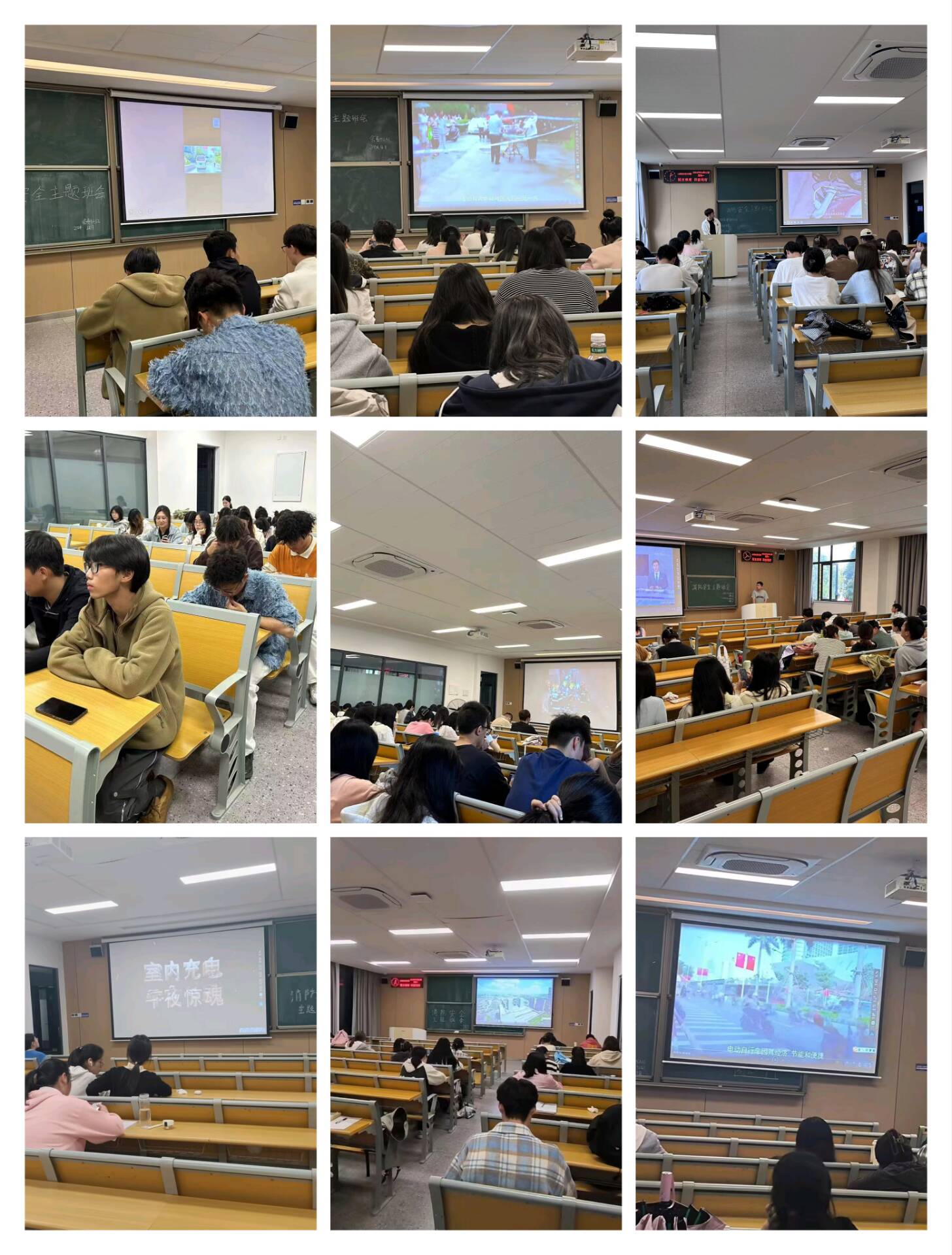 班会上,通过观看消防安全宣传片,同学们了解了宿舍中引发火灾的隐患和电动车入户的危害,学习了如何正确逃离火灾现场、如何正确使用干粉灭火器等消防工具以及区分灭火器的类型;班委提醒同学们遇到火灾时可以大声呼救,及时拨打119火警电话,保持冷静,安全逃离,生命只有一次,同学们要时刻保持高度的安全警觉性。