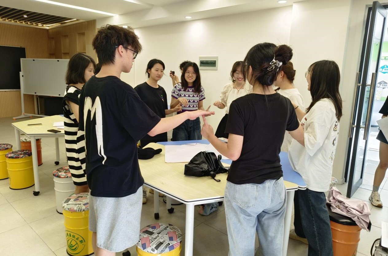 图为同学们正在进行心理健康方面的游戏