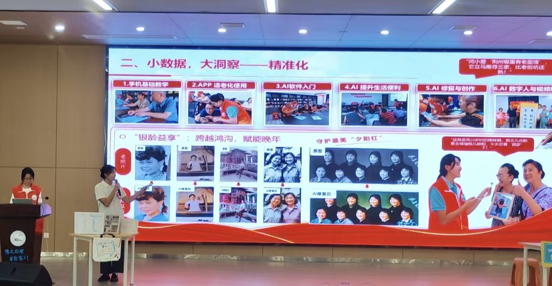精准控制在40秒的“小剧场”结束后,由刘文昭代表汇报社区 “一老一小” 服务项目。配合着PPT,主要讲述了关于项目精准调研精准服务,设置托管班、数字课堂等,链接多方资源,制作视觉产品与服务宣传、累计服务人次,获媒体报道多次等等,在演讲的最后提出准备将项目打造成可复制推广的服务范式。而后,在答辩环节获得了一众评委的点评和认可。