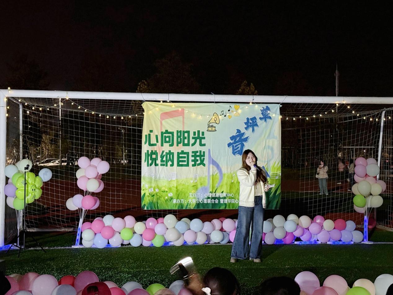 本网讯(通讯员 张友超)星光璀璨,晚风微拂,一场以“心向阳光·悦纳自我”为主题的草坪音乐会于11月14日18:00-21:00在操场南面活力开演。本次活动由心理健康教育中心主办,老员工心理联合会、太阳集团122cc心灵驿站联合承办,通过音乐与心理互动的创新形式,为师生们打造了一场兼具艺术感染力与心理疗愈力的视听盛宴。