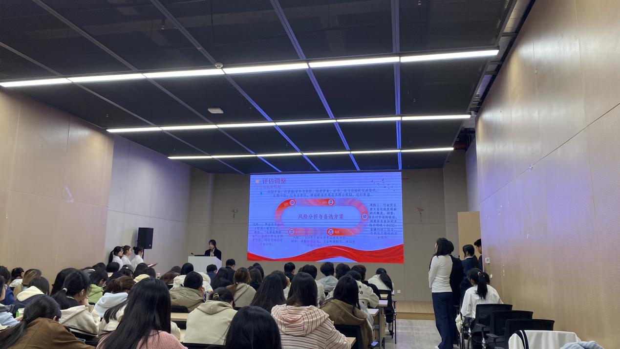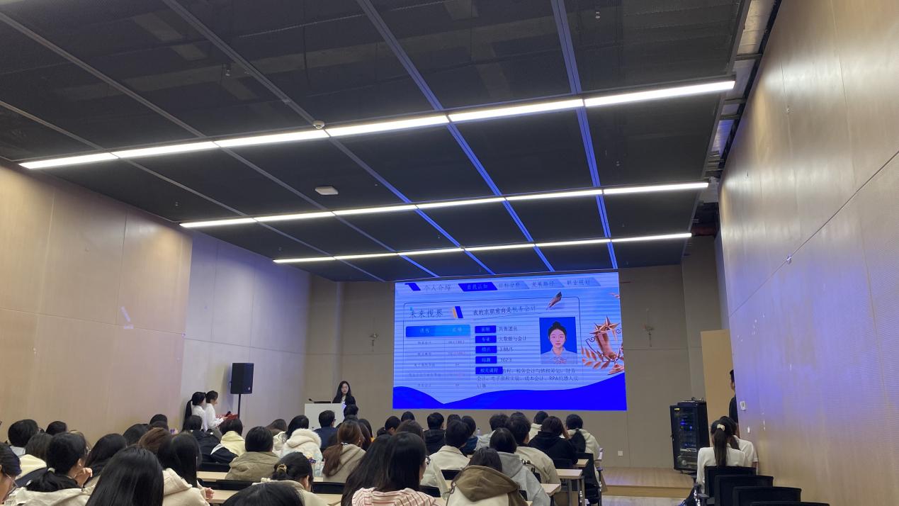 比赛分为“成长”与“就业”两个赛道,采用线下PPT展示与现场答辩相结合的形式。选手们通过精心制作的PPT和富有感染力的演讲,全面呈现了自我认知、职业环境分析、短期与长期目标规划以及具体实施路径。他们的职业目标多元且紧扣时代前沿,涵盖博物馆财务会计、体育赛事运营师、跨境财税专员等多个方向,充分展现了管院学子开阔的视野与远大的理想。