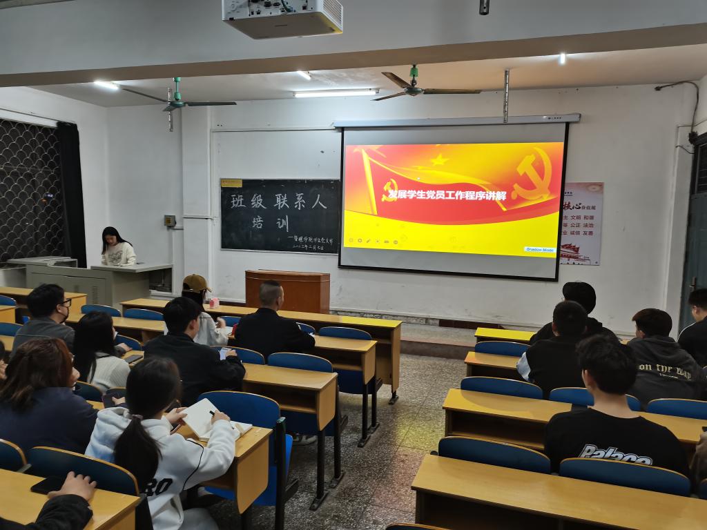 本次培训由车云霄同志讲述了入党流程以及入党申请书、思想汇报、党章学习心得的内容格式。着重讲解了班级联系人的工作职责。她说:“第一,积极主动的与支部分配的联系班级取得联系,掌握所负责班级的基本情况,并与该班级入党积极分子进行谈话。第二,经常了解所负责班级入党积极分子的思想、工作、学习等情况和存在的问题,对他们进行教育、鼓励和帮助他们发扬优点,克服缺点,积极上进,端正入党动机。第三,经常向党支部汇报所负责班级入党积极分子的有关情况,提出加强培养、教育的意见和建议。第四,按照支部要求督促和检查入党积极分子定期向党支部做思想汇报。第五,协助党支部对入党积极分子的表现情况进行考察,并辅助党支部做好入党积极分子入党机校学习的相关工作。第六,及时有效的向所负责班级传达党支部的决议及要求,解答所负责班级入党积极分子在材料书写方面的疑问。第七,按照支部要求收集所负责班级同学的入党申请书。第八,在入党积极分子符合入党条件时,向党支部提出将其列为发展对象的建议。”