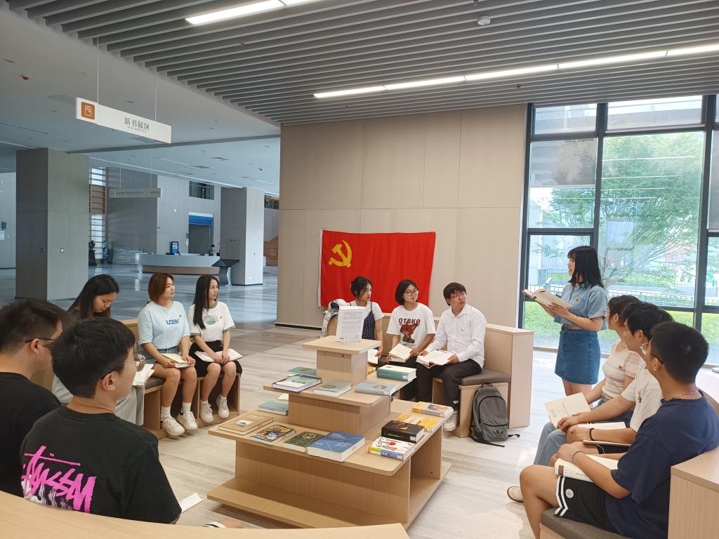 本次活动主要以打扫卫生、整理书籍和读书分享的形式展开,所有发展对象和预备党员积极响应,在图书馆相关负责老师的指引下进行了打扫卫生和书籍整理工作。活动中,整理图书的同学按照图书分类要求和书籍上的标签,正确摆放图书,使书籍摆放得更整齐,以便于其他同学们取用。随后,开展《复兴文库》读书分享会,了解了1840年鸦片战争以来,中华民族伟大复兴的历史足迹。在讨论分享环节,大家畅谈阅读体会,其中,预备党员王思佳同志沉浸式分享了此套丛书中"执政条件下党的建设第一册"记录节选。王思佳同志对其背后的历史背景和重要意义等内容进行了拓展分享,她表示将利用课余时间,进一步认真学习《复兴文库》,了解中国历史,坚定理想信念,凝聚精神力量,为实现中华民族伟大复兴的中国梦贡献她们这一代人的智慧和力量。