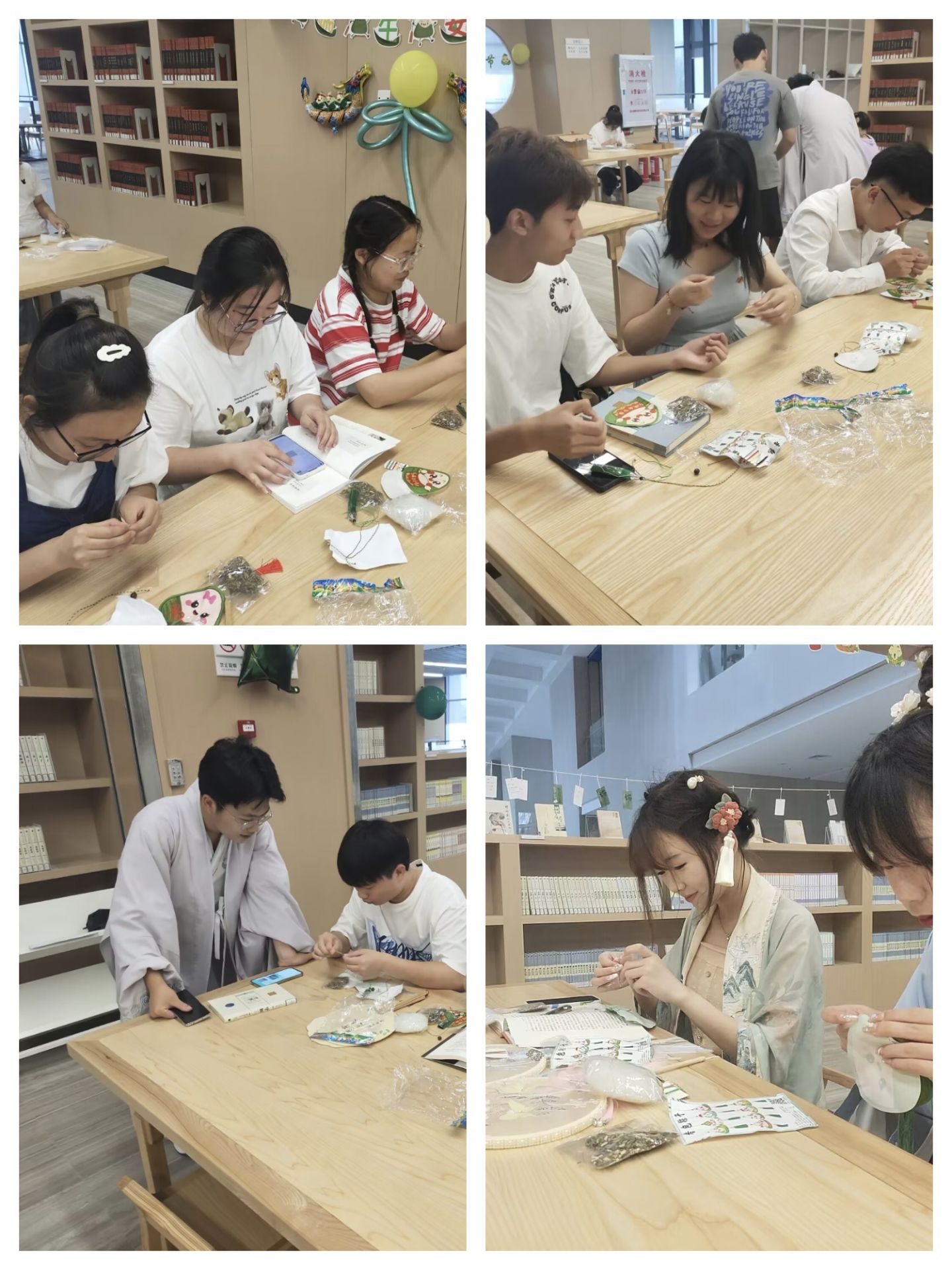 本网讯(通讯员 杨琪 李宗阳)端午读书会、诗词飞花令、艾草香包DIY……6月21日,图书馆联合太阳集团122cc以“浓情端午忆屈原,楚韵声声经典传”为主题,在图书馆二楼国学经典阅读厅举办读书会活动,吸引各院系40余名员工参加。通过非遗手作和传统读书会分享,让同学们体验千年习俗、感受阅读氛围、共度端午佳节。