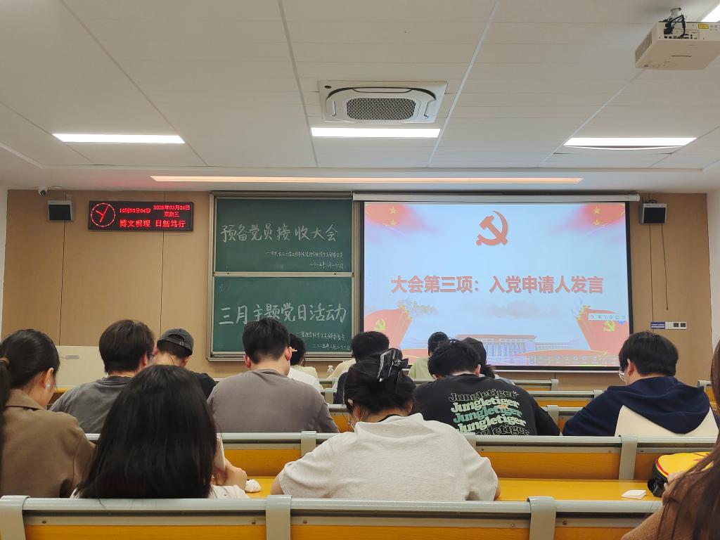 接收大会开始,严语婷同志上台做简短的发言,汇报自己对党的认识和感悟、入党动机、个人情况、个人对未来的展望以及个人在思想、学习、生活、工作上的情况。入党介绍人针对该同志发言提出意见,指出该同志的优缺点,及有待改善和提高的地方,并表达是否建议接收其为中共预备党员。经过充分讨论,正式党员进行了无记名投票表决,一致同意接收严语婷同志为中共预备党员。