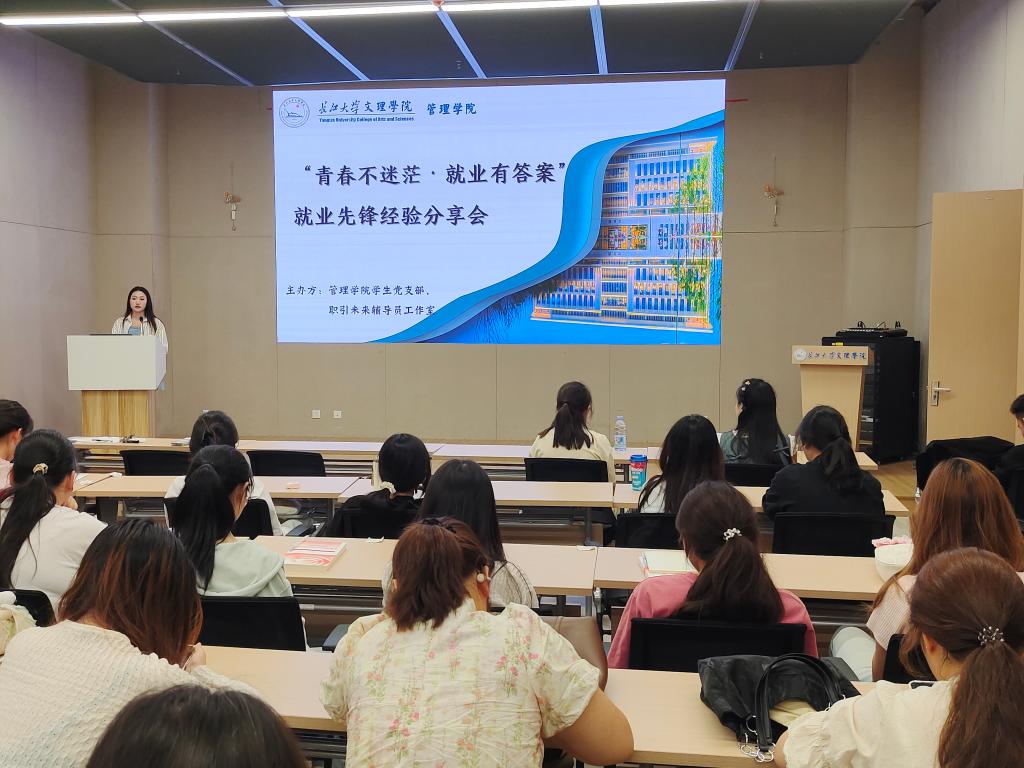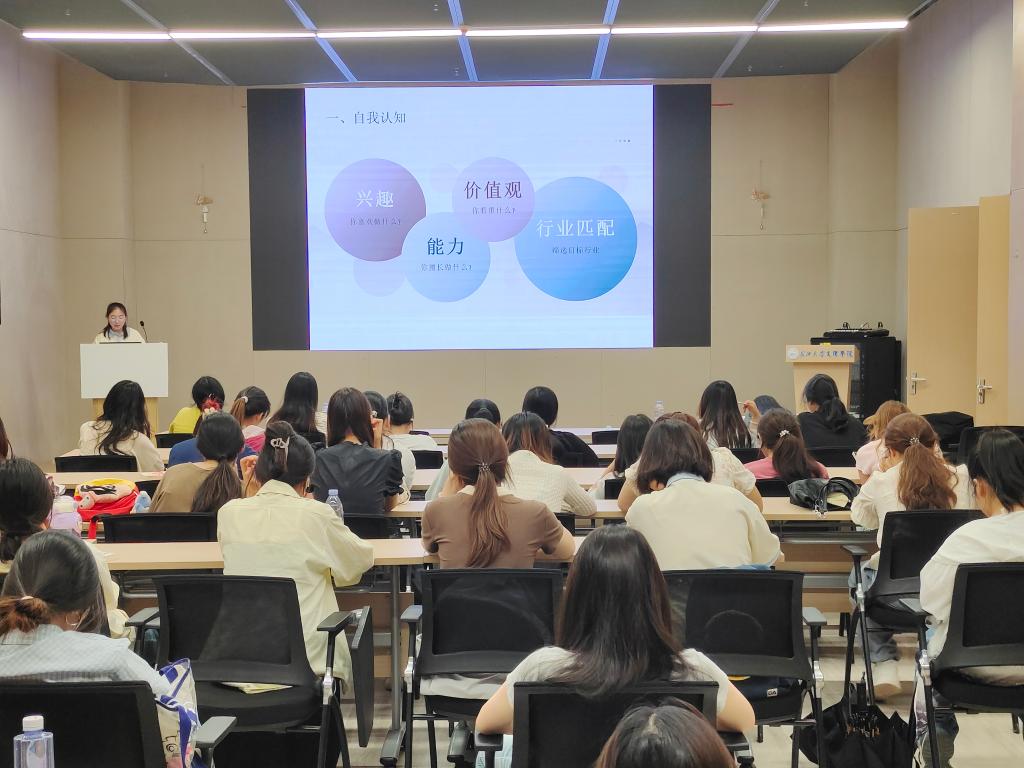 张双目前在中国邮政集团有限公司湖北省分公司担任金融业务岗,她基于职业生涯规划理论框架,系统构建“自我认知—职业定位—职业发展”三位一体的就业指导体系,引导同学们深入剖析个人性格特质、专业技能与职业价值观;通过解析行业发展趋势、岗位能力需求,指导同学们建立“人职匹配”的精准定位方法论,助力同学们在职业选择中实现理性决策与科学规划。