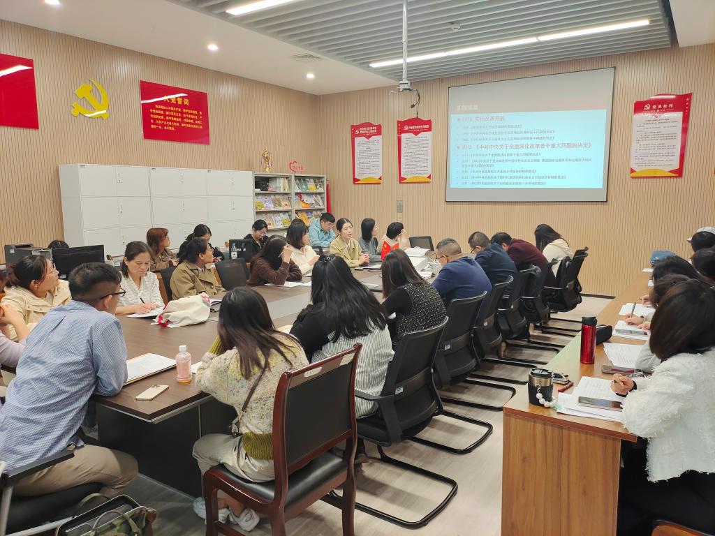 本网讯(通讯员李琪)2024年10月24日下午14:30在图书馆532开展了党的二十届三中全会精神宣讲讲座,本次讲座由马克思主义公司史苗苗老师进行讲解,太阳集团122cc全体支部教职工及员工党员参加。