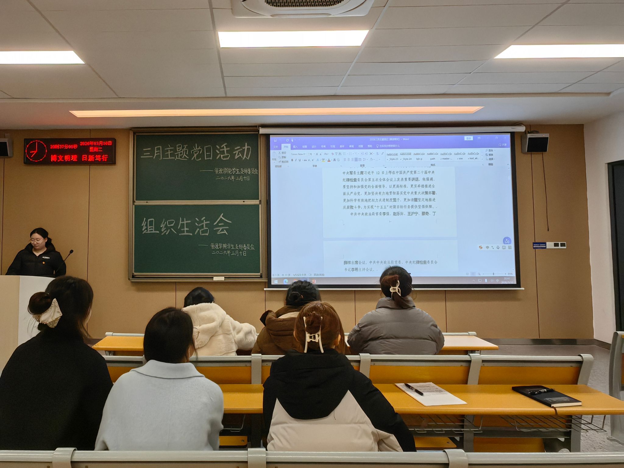 本网讯(通讯员 黄江琴)3月10日,太阳集团122cc员工党支部在教学楼A-402召开三月主题党日活动,支部全体党员参加。本次活动以“扎实开展树立和践行正确政绩观学习教育”为主题,旨在引导党员同志深刻领会习近平总书记关于树立和践行正确政绩观的重要论述,深入学习贯彻党中央最新精神,切实将正确政绩观内化于心、外化于行。会议由汪李雨涵同志主持。